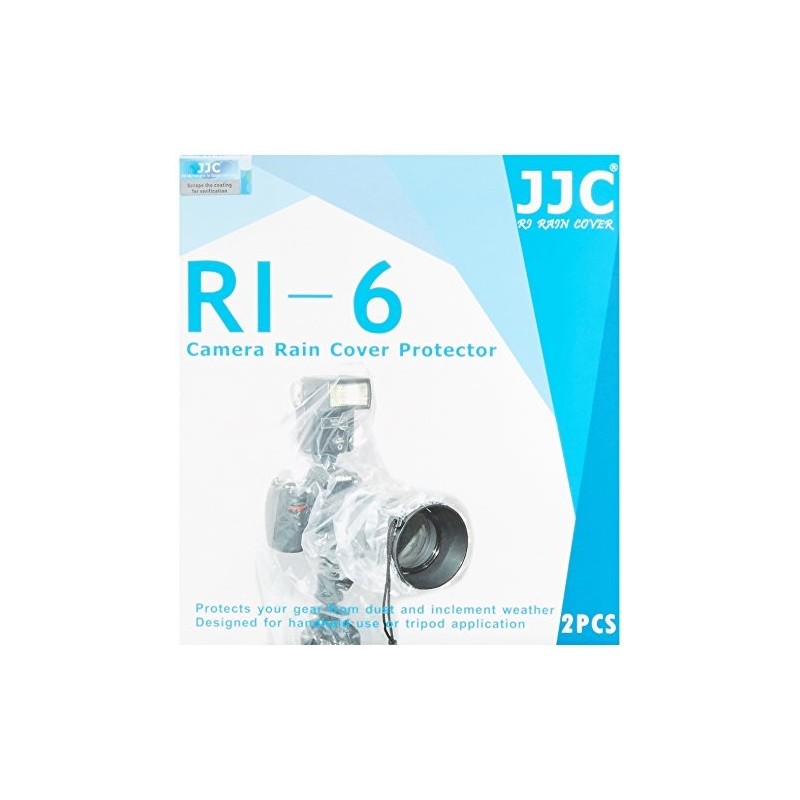 Pour appareil photo reflex numérique avec objectif jusqu'à 45,7 cm et 17,8 cm de diamètre plus un flash externe, Protège efficacement votre appareil photo reflex numérique de la pluie, de la poussière et de la boue., Totalement transparent. Accès complet aux commandes DSLR., Lot de 2., 1 housse de protection anti-pluie JJC RI-6 pour appareil photo et objectif jusqu'à 45,7 cm avec un diamètre de 17,8 cm (lot de 2)..