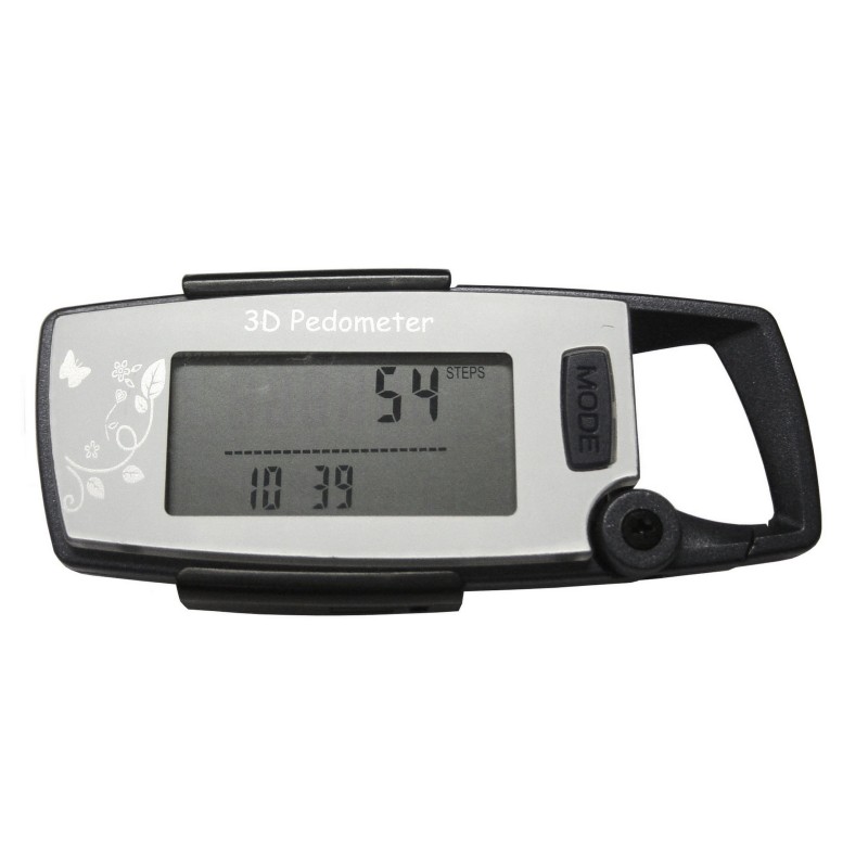 Mousqueton intégré. Mémoire de 30 jours, mesure du MET (équivalent métabolique), calcul de vitesse pour marche et exercices, compteur de pas jusqu'à 99999, mesure de distances en Km ou en Miles, réglage foulée et poids, calcul du nombre de calories dépensées. Fonctionne également dans une poche. 1 pile CR2032 incluse..