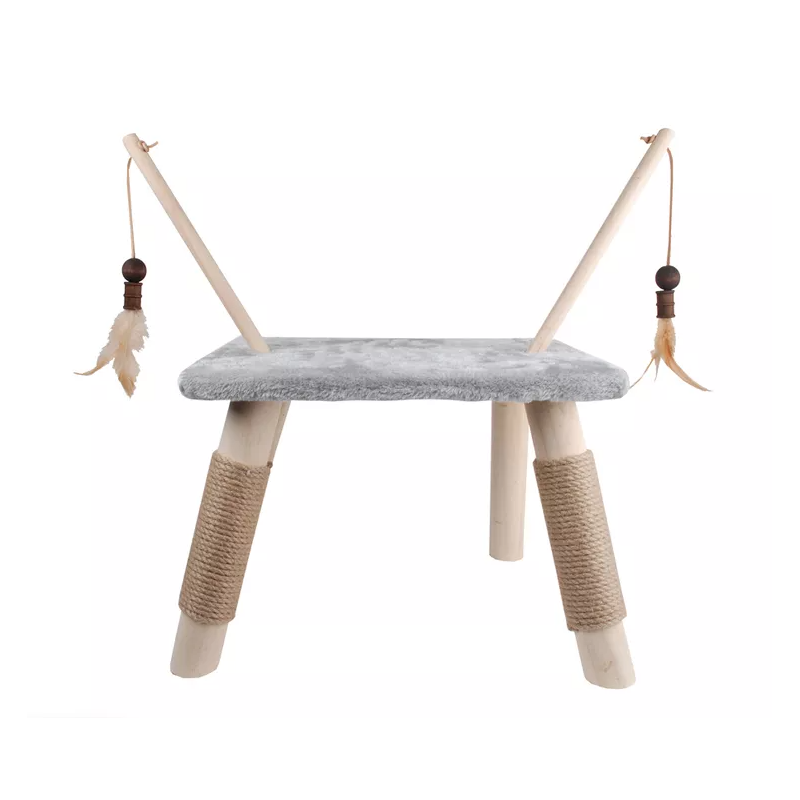 Arbre à chat muni d'un plateau et de 2 perches jouets dans le plus pure esprit ''scandinave''. Poteau large Ø 5 cm recouvert de sisal pour l'hygiène et l'entretien des griffes de votre félin ! Perches jouets amovibles : permet de jouer avec son chat en utilisation canne à pêche ! Dimensions : Largeur 40 cm x profondeur 30 cm x hauteur 31 cm. Essence de bois : pin blanc naturel. Convient aux chats et chatons..