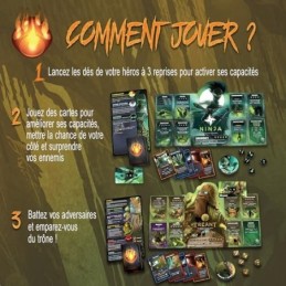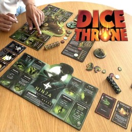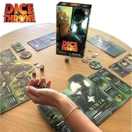 JEU DE STRATÉGIE COMPÉTITIF : Une fois par an, le Roi Fou organise un tournoi où saffrontent les plus grands champions, tous animés par un seul objectif : remporter le plus prestigieux des prix, le Trône. Dans le jeu de société DICE THRONE : Tréant vs Ninja, affrontez votre adversaire dans un combat où chaque lancé de dés peut renverser le cours du duel. Choisissez votre héros, exploitez ses capacités et utilisez vos cartes stratégiquement pour prendre lavantage., 2 HÉROS AUX STYLES DE COMBAT UNIQUES : Le Tréant, imposant et robuste, mise sur sa force brute et sa résilience pour écraser ses ennemis, tandis que le Ninja privilégie vitesse, précision et attaques furtives pour déstabiliser son adversaire.Deux approches opposées pour des affrontements palpitants., JEU DE SOCIÉTÉ POUR ADULTES ET ENFANTS : Avec des règles simples mais une vraie profondeur stratégique, le jeu de société DICE THRONE : Tréant vs Ninja mêle accessibilité et stratégie. , plongez dans des affrontements haletants, améliorez vos héros et déjouez les plans ennemis avec des cartes et des dés finement maîtrisés., PARTIES RAPIDES ET INTENSES : Avec ses parties courtes et intenses, le jeu de société Dice Throne 2 se joue en 20 à 40 minutes chrono. Préparez la table, lancez les dés, terrassez vos rivaux et revendiquez le Trône. Le tout sans prise de tête, pour des moments de pur plaisir ludique., JEU IMMERSIF MODULABLE DE 2 JUSQUÀ 6 JOUEURS : Chaque boîte Dice Throne contient tout le nécessaire pour jouer à 2 joueurs : 5 dés personnalisés par personnage, un deck de cartes, un plateau individuel et des jetons. Grâce à son système compatible, combinez plusieurs boîtes pour des parties épiques jusquà 6 joueurs. Un matériel soigné pour une immersion totale..