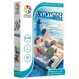 Pouvez-vous vous échapper de l'Atlantide avant que cette ville mythique ne disparaisse à jamais sous l'eau ?, Trouvez le chemin le plus court de la plus haute tour jusqu'au port, où un bateau vous attend pour vous mettre en sécurité., Combien de marches avant votre arrivée ? Arriverez-vous à temps ?, "L'Atlantide" est un jeu de puzzle compact avec 60 missions 3D, pratique à emporter partout., Contenu : Un plan de jeu, une haute tour, cinq quartiers avec des escaliers de couleurs différentes bleu, un livret de 60 défis avec les solutions..