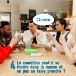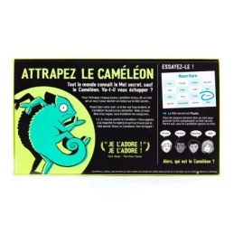 ATTRAPEZ LE CAMÉLÉON : Un jeu de société où les joueurs doivent faire la course pour attraper le caméléon avant qu'il ne soit trop tard., UN MOT SECRET : Dans ce jeu de société, tout le monde connaît le mot secret - sauf le joueur qui a la carte Caméléon., NE VOUS FAITES PAS PRENDRE : Utilisez des codes cachés, des mots soigneusement choisis et un peu de pointage de doigt pour traquer le joueur coupable dans ce jeu de société... avant qu'il ne se fonde dans la masse et ne s'échappe !, FACILE À APPRENDRE, RAPIDE À JOUER : Comme tous les bons jeux de société familiaux, il faut 2 minutes pour apprendre et seulement 15 minutes pour jouer. Ce jeu de société est recommandé pour 3 à 8 joueurs et pour les 14 ans et plus., MULTIPLES RÉCOMPENSES : « Meilleur jeu dambiance » au UK Games Expo. Label d'excellence pour les jeux de société décerné par Dice Tower Games..