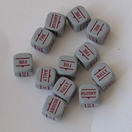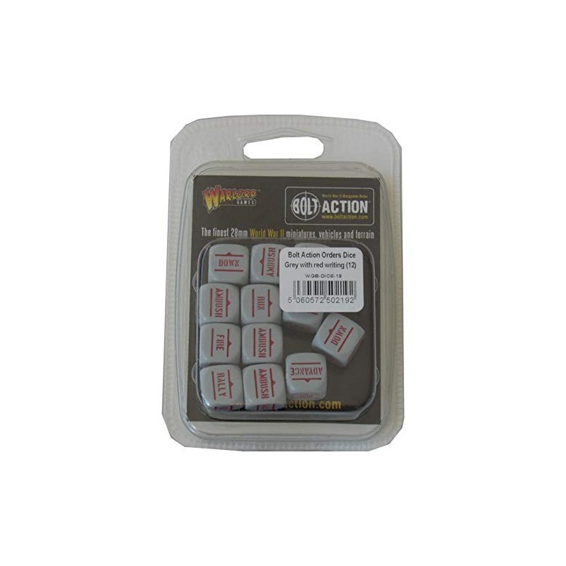 Bolt Action 2 Bolt Action Orders Dice Grey avec écriture rouge.