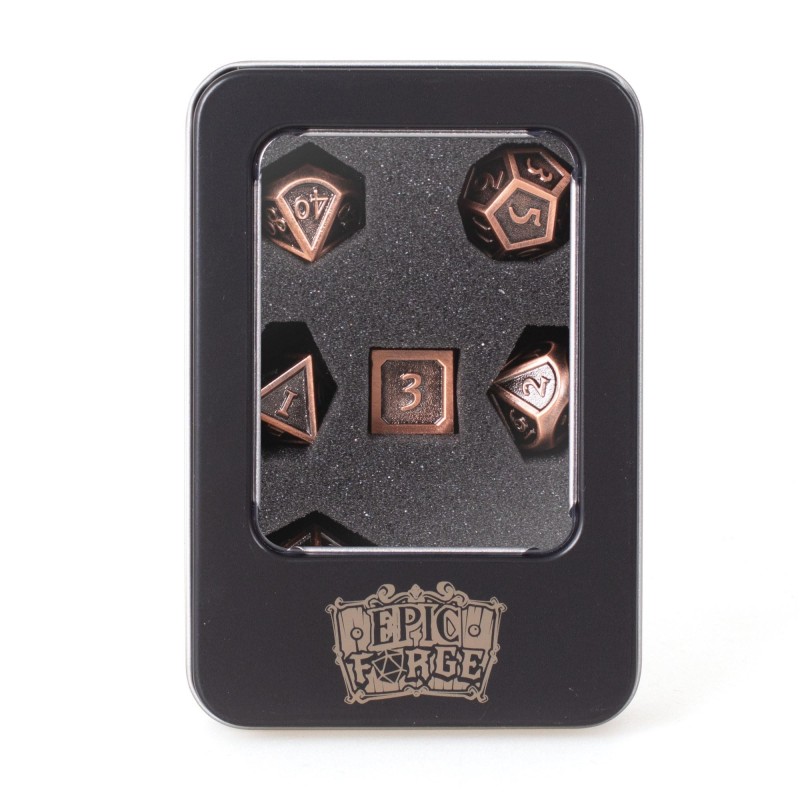 Epic Forge - Lot de 7 dés métal 14mm (boîte métal) - Bronze émaillé