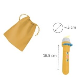LAMPE SONORE ENFANT : Janod vous présente sa lampe sonore,une activité enfant 3 ans et + innovante et et évolutive. Cette boite à histoire pour enfant s'utilise de 3 manières différentes: écoute seul,visionnage seul,écoute + visionnage. Le bouton 1 propose 4 comptines chantées de 80 secondes environ,le bouton 2 une histoire de 300 secondes environ,le bouton 3 contient 8 ambiances sonores de 60 secondes environ 7 secondes par son., CONSEILS D'UTILISATION : Lenfant appuie sur ON pour démarrer sa boite à histoire. Il insère une des 3 rondelles dimages dans la lampe,appuie sur le bouton correspondant à la couleur de la rondelle (histoire,comptines ou ambiance sonore). Le son correspondant à son choix démarre et lenfant change dimages en tournant la rondelle dans la lampe enfant 3 ans et +., DIMENSIONS DE LA BOÎTE : Les accessoires de cette conteuse d'histoire enfant Janod sont rangés dans une boite automatique. La boite de cette activité enfant 3 ans et + a des dimensions de190 x 100 x 45 mm. La largeur de boite est adaptée à la dimension des accessoires. Les disques seront rangés à la verticale dans une petite cale en carte avec 3 fentes., CONTENU DE LA BOÎTE : Cette activité enfant 3 ans et + de Janod est complète. En effet,cette conteuse d'histoire enfant disponible en 4 références propose 1 boite contenant: une lampe enfant avec 3 boutons illustrés et 3 rondelles de 8 images à projeter,1 lampe sonore,3 rondelles,1 pochon imprimé pour ranger la lampe et les 3 rondelles., 4 UNIVERS DIFFÉRENTS : Janod propose une boite à histoire pour enfants reprenant des univers différents. Ainsi,retrouvez cette lampe enfant dans 4 univers distincts: Bonne nuit,Lheure des bisous,Histoires danimaux,Loup y es-tu? Chaque conteuse d'histoire enfant propose 4 Comptines,1 histoire ou 1 conte,le tout avec 8 ambiances sonores..