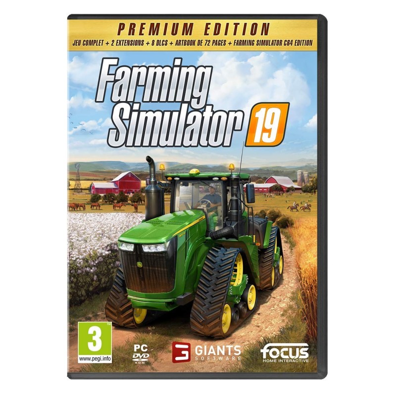 La simulation agricole ultime est de retour avec de tout nouveaux graphismes pour offrir l'expérience de jeu "farming" la plus complète jamais vue !, Conduisez plus de 475 véhicules et équipements provenant des plus grands constructeurs agricoles, avec pour la première fois la marque John Deeree, Développez votre ferme en ligne et téléchargez à linfini du contenu créé par la communauté !Lédition Premium Edition contient le jeu best-seller Farming Simulator 19, ainsi que le contenu suivant :, - Extension Alpine Farming- Kverneland & Vicon Equipment Pack- Bourgault DLC- Extension Platinum- John Deere Cotton DLC, - Anderson Group Equipment Pack- John Deere XUV865M Gator DLC- HOLMER Terra Variant DLC- CLAAS DOMINATOR 108 SL MAXI DLC- CLAAS TORION 1914 Dev Mule DLC.