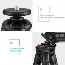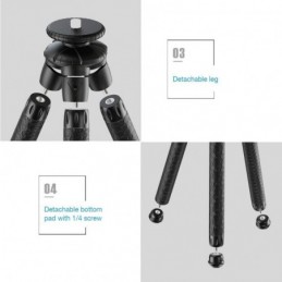 ?FLEXIBLE: Fabriqués en aluminium haute qualité et recouverts de caoutchouc haute densité, les pieds se tordent dans tous les sens pour s'accrocher partout! Chaque pied mesure 17 cm et se dévisse. Le trépied se transforme en mini-support de bureau., ?UNIVERSEL: Le trépied est compatible avec tous les Smartphones mesurant entre 7 cm et 10, 3 cm de largeur (Il s'installe grce au support fourni). Il accueille également tous les appareils photos équipés d'un filetage femelle 1/4" n'excédant pas les 3kg., ?SIMPLE D'UTILISATION: La rotule à Ball offre une rotation à 360° et un angle d'inclinaison à 90°. Les réglages sont effectuées grce au système de molette à réglage rapide situé à la base de la tête du trépied., ?COMPACT & LEGER: Le trépied est conçu pour être facilement transportable. Il mesure 32 cm et il pèse que 0, 25 kg. Vous pouvez le ranger dans votre sac pour l'avoir à porter de main lors de toutes vos sorties., ?GARANTIE A VIE: Apexel est un fabricant d'objectifs et accessoires photos. L'entreprise se concentre sur la technologie et l'innovation en matière de conception pour offrir des produits de haute qualité..