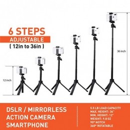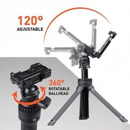 Trépied à Selfie 3 en 1 pour Journaliste : Support de Table de 30,5 cm, Support de Sol de 91,4 cm, Perche à Selfie, poignée Universelle, rotule Ball à 360 degrés pour Appareil Photo, Smarpthone