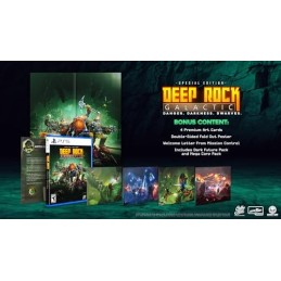 L'édition spéciale comprend 2 packs DLC : Le pack "Dark Future" et le pack "Mega Corp" + Poster recto-verso dépliable + 4 cartes artistiques de qualité supérieure + Lettre de bienvenue du centre de contrôle des missions, Deep Rock Galactic est un FPS de SF en co-op mettant en scène des nains de l'espace durs à cuire, des environnements 100 % destructibles, des grottes générées de façon procédurale et des hordes infinies de monstres extraterrestres., Travaillez en équipe pour creuser, explorer et combattre dans un énorme système de grottes remplies de hordes de terribles ennemis et de ressources précieuses. Vous devrez vous appuyer sur vos coéquipiers si vous voulez survivre dans le système de grottes le plus hostile de la galaxie !, Choisissez la classe adéquate pour le job. Frayez-vous un chemin dans les ennemis en tant que soldat, partez en reconnaissance et éclairez les grottes en tant que scout, mâchez directement la roche compacte en tant que foreur, ou assistez l'équipe avec des structures défensives et des tourelles en tant qu'ingénieur., Détruisez tout autour de vous pour atteindre votre objectif. Il n'y a aucun chemin pré-établi, vous pouvez donc réaliser votre mission comme vous l'entendez. Forez directement vers votre objectif ou bien construisez un réseau dense de chemins pour explorer les environs, c'est comme vous voulez. Mais faites preuve de prudence, vous n'aurez pas envie de tomber sur une horde d'extraterrestres sans être préparés !.